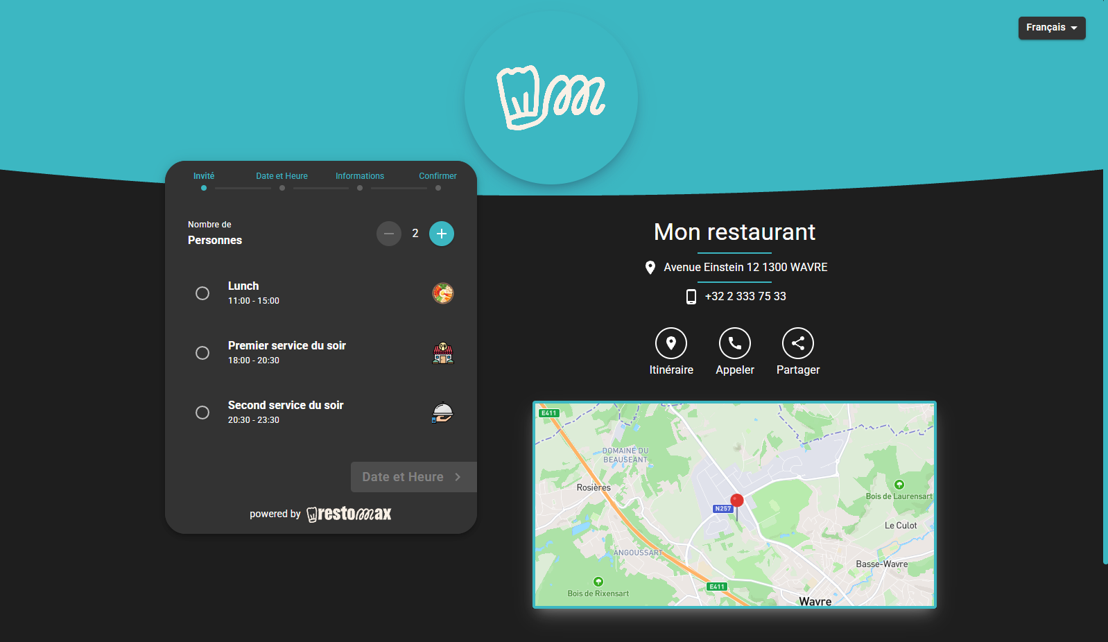 - Réservations accessibles 24h/24 et attentionnées : choix de zone, renseignement allergies et préférences, etc.